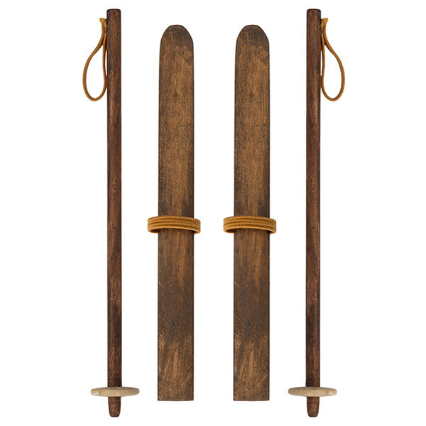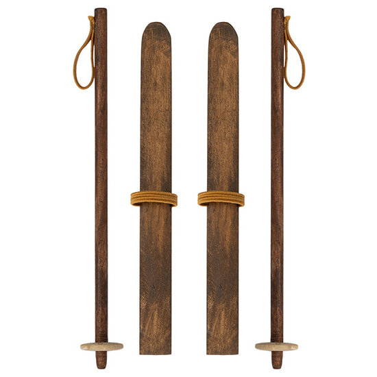 Met deze Maileg ski- en skistokken verkennen moeder en vader muis de besneeuwde bergen. De skilatten en skistokken zijn gemaak uit hout met een elastische band om ze te bevestigen aan de muizenpootjes van vader, moeder, grote zus en broer muis. De Maileg muizenfamilie is nu helemaal klaar voor een winters avontuur!