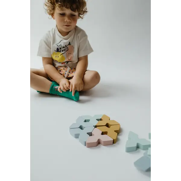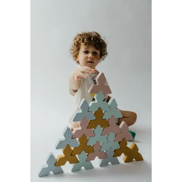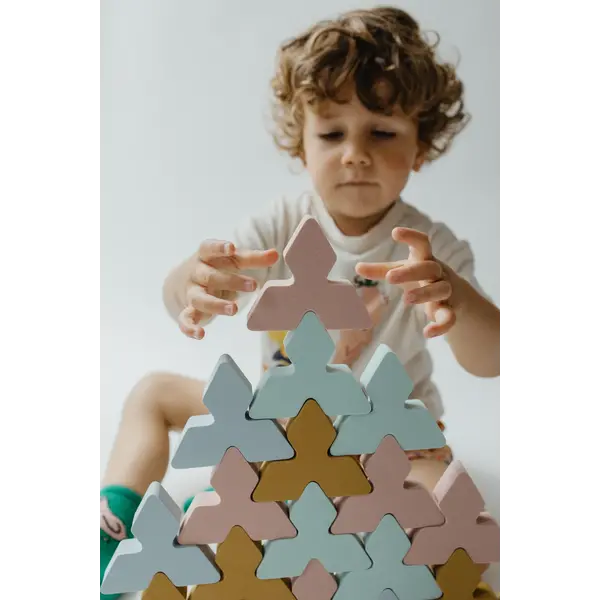 De Trianglo set is een creatieve blokkenset bestaande uit unieke driehoekige vormen, ontworpen om bouwen, puzzelen en stapelen te bevorderen. Deze set stimuleert niet alleen de hand-oogcoördinatie en fijne motoriek, maar moedigt ook creativiteit aan, waardoor kinderen op een speelse manier hun ruimtelijk inzicht ontwikkelen.
