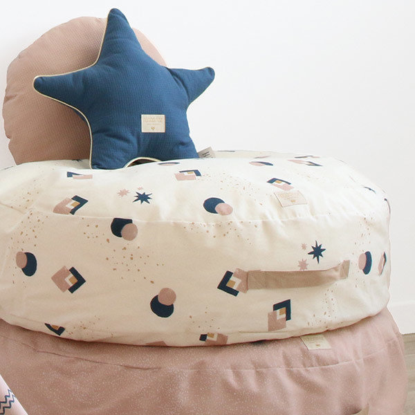 Nobodinoz kussen ster Aristote Natural. Dit leuke kussen uit de nieuwe Elements serie is de ideale decoratie bij het aankleden van alle gezellige hoekjes in huis. De Nobodinoz Elements serie is geïnspireerd op de elementen uit het heelal, uitgewerkt in zachte pastel kleuren, prachtig nachtblauw, in combinatie met gouden details en mooie prints. Het kussen is gemaakt uit 100% Oeko-Tex katoen, met polyester vulling. Was dit kussen incl. de vulling met de hand en laat het al liggend drogen. Combineer dit kussen vrolijk met alle andere kussens van Nobodinoz, hun vrolijke prints en verschillende maten zorgen voor de ideale sfeer en decoratie in de kinderkamer en het interieur. Met al deze knappe kussens in je tipi, speelhoek, zetel en bed, wordt het lekker gezellig.