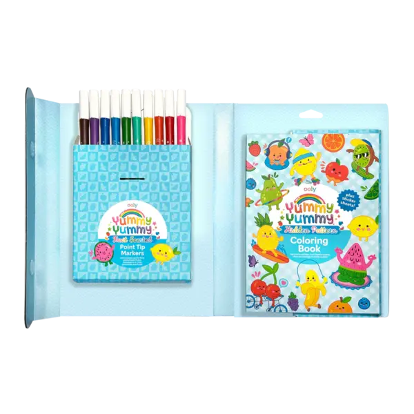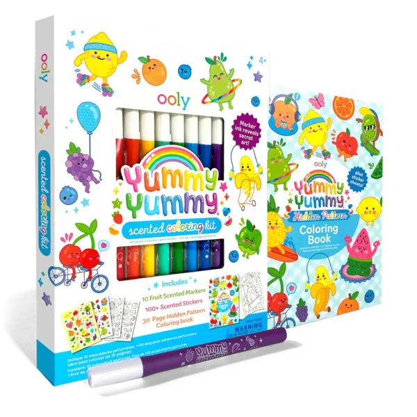 Waarom genoegen nemen met gewoon als je ook buitengewoon kunt hebben? De Yummy Yummy geurende kleurkit voor kinderen zit boordevol leuke extra's om je kleine kunstenaar blij, vermaakt en creatief geïnspireerd te houden. Deze alles-in-één draagbare kit bevat 10 fruitgeurende stiften, meer dan 100 geurende stickers en een verborgen kleurboek met 30 pagina's vol verrassingen die wachten om ontdekt te worden. Het is net een fruitig feestje in een doos!