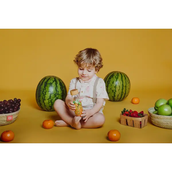 Het leren herkennen van fruit was nog nooit zo leuk met deze sensorische fles vol vormen en kleuren. Schud hem gewoon en... het is oogsttijd! Mandarijnen, druiven, bananen, aardbeien... Kies je favoriete fruit en stop niet voordat je ze allemaal hebt gevonden!
