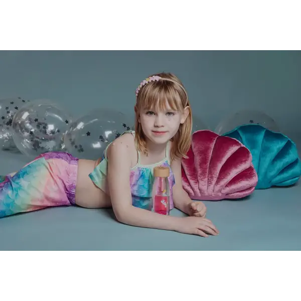 Deze Move Bottle met vergrootglaseffect verbergt een maritiem universum vol verrassingen. Schud hem, kijk naar binnen en je ziet de wonderen van de zeebodem. Tussen bubbels, weekdieren en pailletten zie je de hoofdpersoon van dit verhaal, onze prachtige zeemeermin, zwemmen. Is wat ze zeggen over haar raadselachtige stem waar?