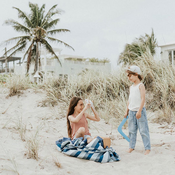 Leuk weetje: De opbergzak heeft in het midden een gaatje om zo al het zand na een bezoekje aan het strand eruit te laten lopen.