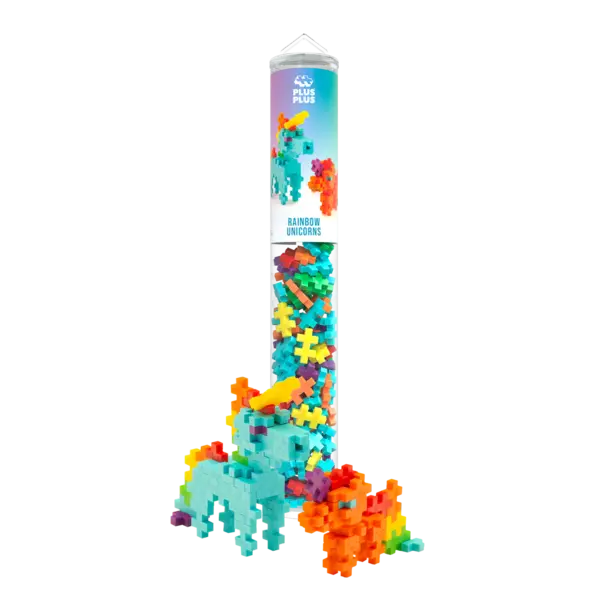 De Rainbow Unicorns Tube bevat 100 Plus-Plus-stukjes in een herbruikbare, reisvriendelijke koker. Met deze set kun je een eenhoorn en een klein baby-eenhoorn bouwen, of iets heel eigens bedenken. Plus-Plus staat bekend om zijn duurzaamheid en hoge kwaliteit, waardoor deze koker perfect is voor urenlang creatief en leuk speelplezier.