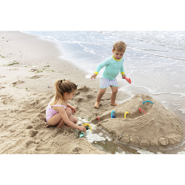 Ringo is het meest veelzijdige en compacte petanque-spel ooit! Een spel met 6 ringen + 1 balletje = 100 manieren om te spelen. Ringo kan zowel in het water, op het strand, in de tuin als binnen gebruikt worden. Door de compacte verpakking is dit het ideale reisspel! Ringo kan perfect gecombineerd worden met ander Quut speelgoed zoals de Triplet en de Cuppi. Je kan ook zelf je eigen spelletjes uitvinden!