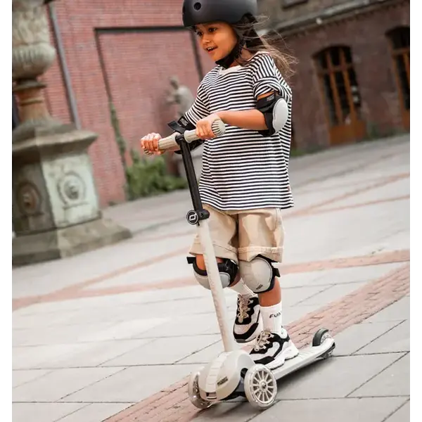De Highwaykick 3S-step is ideaal voor kinderen vanaf 3 jaar of met een lengte tussen 96 en 130 cm. Het bijzondere aan deze kinderstep is het dubbele stuursysteem: de step kan zowel met de klassieke draaibare stuurknop als door gewichtsverplaatsing worden bestuurd, waardoor kinderen hem gemakkelijker en veiliger kunnen besturen. Dankzij het in drie standen in hoogte verstelbare stuur groeit de step mee met je kind en biedt hij jarenlang rijplezier. Het nieuwe mechanisme om de step in te klappen maakt het kinderspel om het stuur naar achteren te klappen, waardoor de step gemakkelijk en compact kan worden opgeborgen en vervoerd.