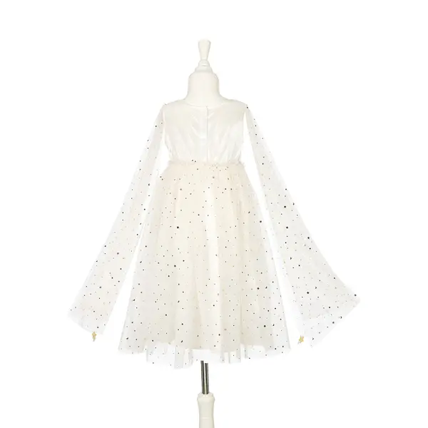 Prinses Dorianne is een dromerig meisje. Met haar hoofd in de wolken droomt ze van allerlei avonturen! Van het bewaken van het kasteel tegen bandieten en draken, waarbij ze zo dapper is, tot het dragen van prachtige jurken en accessoires op een groot kasteelbal. Ze heeft zelfs eens een piraat gekieteld! Oh, wat een avonturen kun je beleven in je dromen...! De jurk van Dorianne is gemaakt van 100% polyester. De lengte van de rok is 48 cm (3-4 jaar), 57 cm (5-7 jaar) en 67 cm (8-10 jaar).